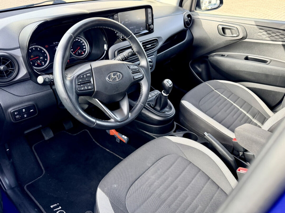 Een andere handige feature is de rijstrooksensor met correctie, die helpt om binnen de rijstrook te blijven en zo de veiligheid te verbeteren. De metallic blauwe lak geeft deze Hyundai i10 een chique uitstraling en maakt hem een echte blikvanger op de weg.